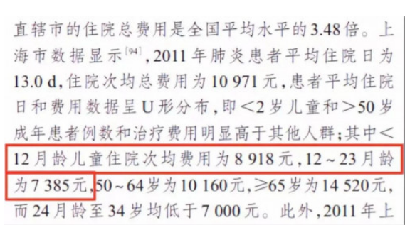 根据上海市的一项临床统计数据显示,2 岁以下儿童的肺炎住院次均费用高达 7000~8000 元。