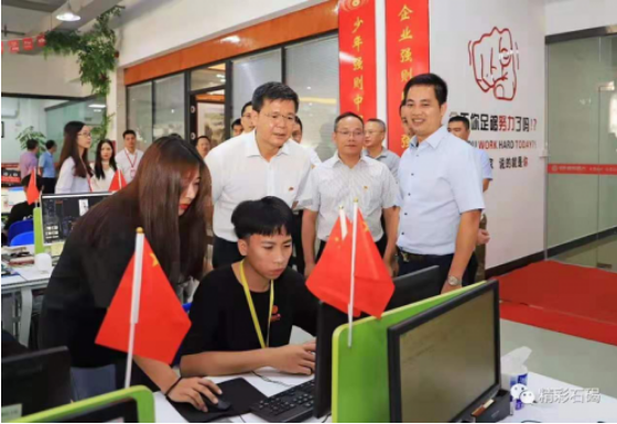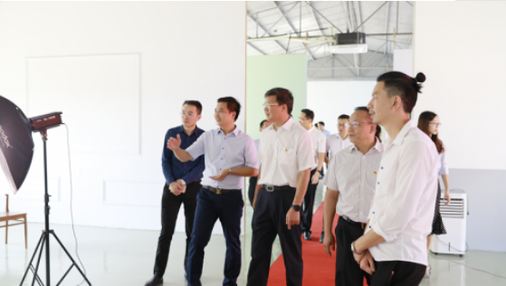 秋光绚丽,金风送爽,2019年10月18日石碣镇委书记罗晓勤、镇党委委员叶晓山、党政人大办主任钟文伟、组织人事办主任王志锋等领导莅临昌和盛大集团新媒体电商园参观指导。昌和盛大董事长谢小文及全体高管出席接待。