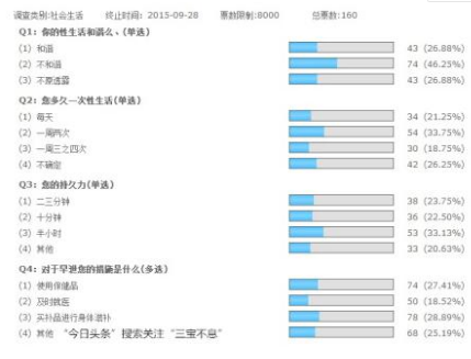 一份关于中国男性早泄报告的数据,数据指出,“全球30%的男人存在早泄情况,而来自“环球性态度和和性行为研究”的数据同时指出,一项对27500名年龄介于40~80岁的男性和女性关于性态度、性生活、性信念和性满意的国际调查报告指出,跨越各个年龄组的全球早泄的患病率(基于接受治疗者的自我报告)大约为30%;”而因性生活不和谐造成的离婚率可以从下图中管中窥茂;