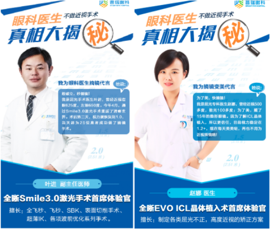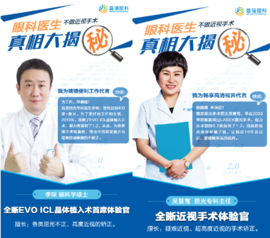 不仅如此我们的医生队伍也纷纷进入摘镜大军,打破医生不做近视手术的谣言!普瑞眼科医院亲身经历过近视矫正的医护人员,看看他们成功摘镜后的笑容,不管是飞秒、全飞秒,还是 ICL晶体植入都能还原他们自信的样子,普瑞眼科帮您解锁颜值 迈向清晰“视界”。