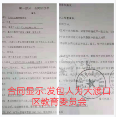 2019年7月26日,王唐伟在重庆的问政平台上发了一个帖子,将发包方大渡口区教委监管不力以及王付成故意拖欠材料款和农民工资的情况反映一下。大渡河口区教委在问政平台的回复是:区教委(学校)支付工程款按程序只能支付给合同单位,学校无任何拖欠合同施工单位工程款情况,不能也无法擅自支付给无合同关系的其他单位或个人。教委以及学校在类似经济纠纷中没有强制手段,建议走法律途径解决此类经济纠纷。大渡口区教育委员会,2019年7月26日。