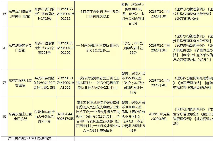 东莞新一期的违法违规执业医疗机构名单发布