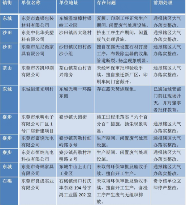 东莞市大气办通报新一批未落实大气污染防治措施企业和工地名单