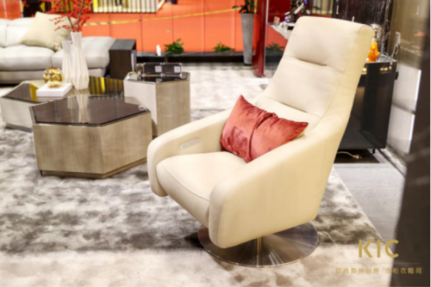 “这款沙发可以根据身体的不同部位需求随意调节,让身体处于最放松的状态。”工作人员介绍,NORA单人沙发通过每个消费者的不同特点打造专属沙发,金属底座,稳定性强,可电动调节座椅和底部踏板让人能够身心放松的窝在沙发中享受片刻时光。Ricky介绍:“客户只需要提供自己的需求,KIC便可当场下单到欧洲厂家制作,大到每块牛皮的选择,小到沙发细微处的缝合线,顾客都可根据自己的喜好进行独家定制。”