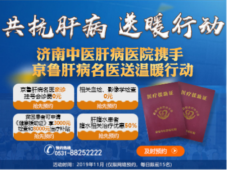 为了让广大肝病患者度过一个安稳的冬天,能够及时得到合理的诊疗,为了让贫困患者也能看得起病得到救助,济南中医肝病医院于2019年11月2日-2019年11月30日开展“共抗肝病 名医名院暖冬行”活动,推出一些列专属优惠,将重症肝腹水补助计划提上日程。