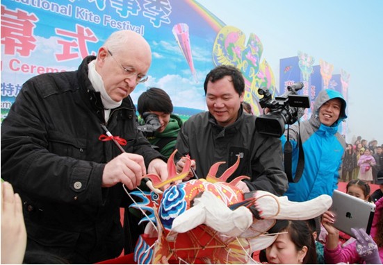 国际风联副主席汉斯和喀斯特董事长任良生为龙头风筝点睛