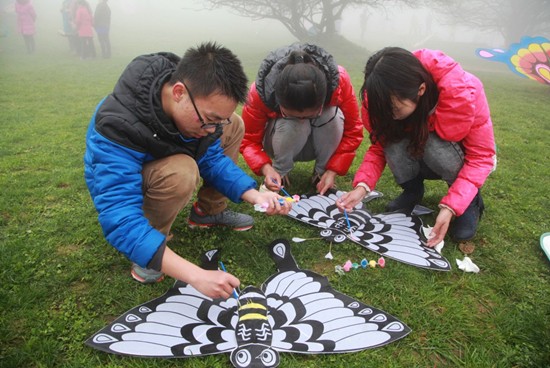 除了精彩的风筝特技表演外,景区还为游客送上免费的风筝,体验一把自己放飞的乐趣,更提供了空白的风筝,让游客描绘属于自己色彩的风筝。