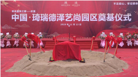 2019年11月13日上午9:00,中国·琦瑞德泽艺尚园区奠基仪式在湖州织里隆重举行,参加奠基仪式的嘉宾有织里镇党委副书记、镇长陈勇杰、织里镇人大副主席潘新林、织里镇人大副主席史宁慧、中国服装协会、上海办事处主任檀安慈、琦瑞德泽创始人李云品、湖州琦瑞德泽实业有限公司副总经理程长春、万顺服饰总经理张晓波、万顺服饰陈列总监张晓东、琦瑞德泽福建服务商创始人陈由重等,以及织里各著名童装企业创始人和琦瑞德泽品牌全国各地的服务商。
