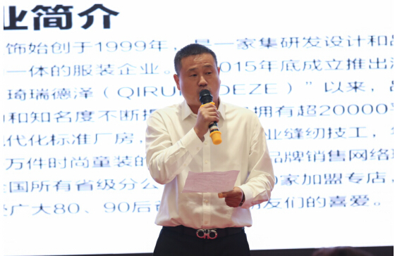 晚宴上浙江万顺服饰董事长、琦瑞德泽品牌创始人李云品先生也讲解了企业的发展历程和未来五年的发展规划。未来、在各级领导的关怀下,在社会各界朋友的帮助下,李董有信心,也有能力将中国·琦瑞德泽打造成一个世界级服装品牌。