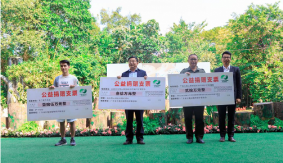 (图片说明:长隆动植物保护基金会为广东省候鸟“护飞行动”、云南白马雪山国家级自然保护区、广西大桂山国家级自然保护区瑶山鳄蜥保护进行捐赠,长隆动植物保护基金会理事长苏展航在现场捐赠了保护资金)