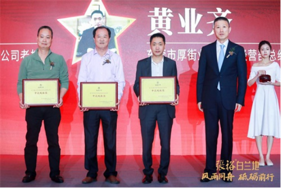盛典上,张裕领导对十家优秀经销商进行颁奖。其中有敢闯敢拼的新锐之星,有一路风雨同舟的骨干精英,还有在2019年迎难而上的突出贡献者,以及承担起中坚力量的中流砥柱。