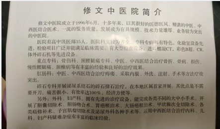 据严志介绍,贵州省修文县红十字中医院(以下简称修文中医院)本来是当地一家不错的医院,职工有100多人,医院每年接待患者达上万人次,年收入3000万元左右,医院在当地也算有口皆碑。