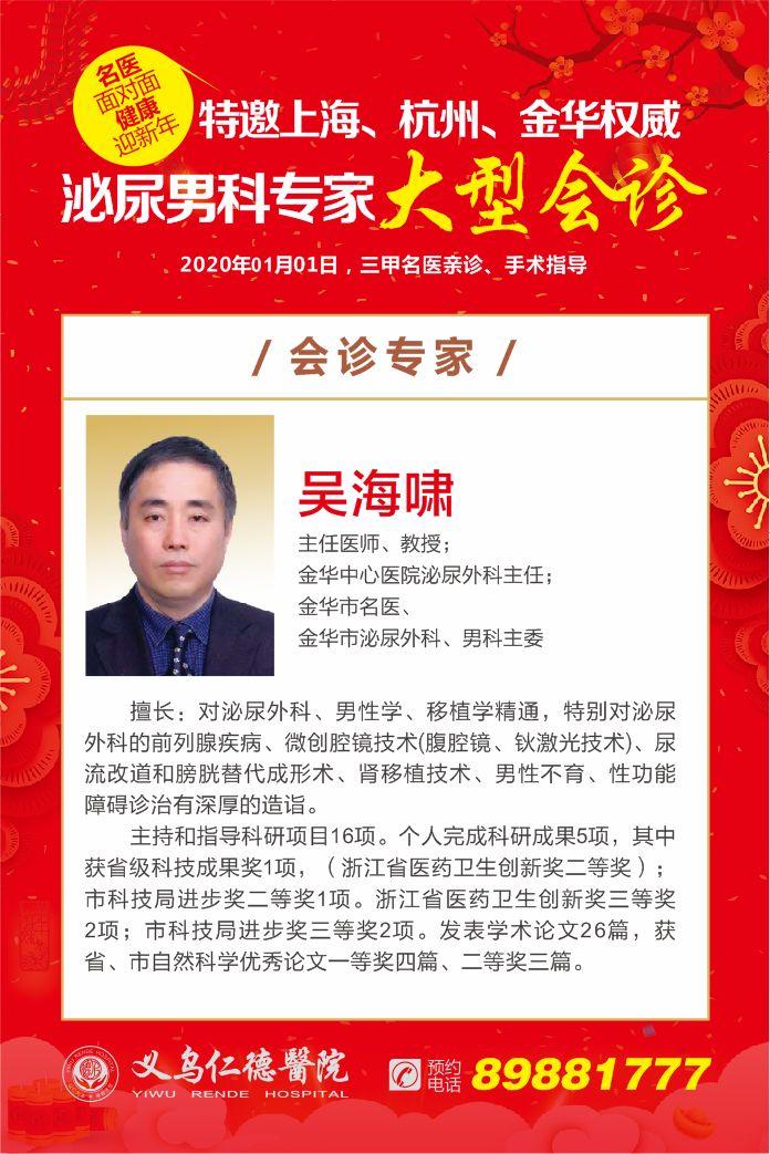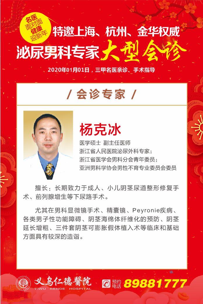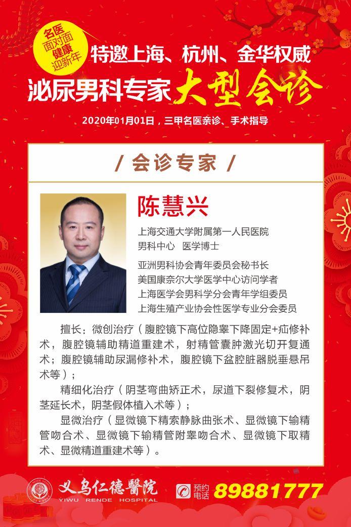 义乌仁德医院秉承“以仁为本,厚德济世”的院训理念,始终奉行“名医,名科,名院"的办院方针和“专家,专业,专注”的学科建设理念,竭诚为广大男性患者提供诚信,优质,规范的诊疗服务。
