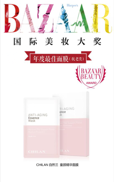 《时尚芭莎》是超过150年的全球第一本女性时尚杂志,全球32个版本,覆盖48个国家,21种语言,中国版《时尚芭莎》为中国女性带来美学与智慧的丰富盛宴。2019年芭莎联手国际各刊美容主编、国内美妆专家一起评出的权威美妆2019芭莎国际美妆大奖清单中,其中,专注无添加营养护肤的国货新星CHILAN自然兰,凭借童颜精华面膜荣获抗老类年度最佳面膜。