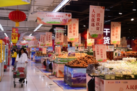 12月23日,人民日报刊出文章《消费扶贫进超市》,点赞“人民优选·消费扶贫”走进家乐福活动,称此举既丰富了北京市民的“菜篮子”,又为贫困地区的农户们送去“丰收年”。据悉,该活动由人民网·人民健康、北京苏宁易购、北京家乐福主办,北京市商务局、北京市扶贫办支持,在北京家乐福四元桥店举办为期一周的扶贫产品展销会,精选了15个扶贫地区40余种商品在家乐福门店集中陈列销售,未来将在全北京市的家乐福门店及苏宁小店上架扶贫县产品。