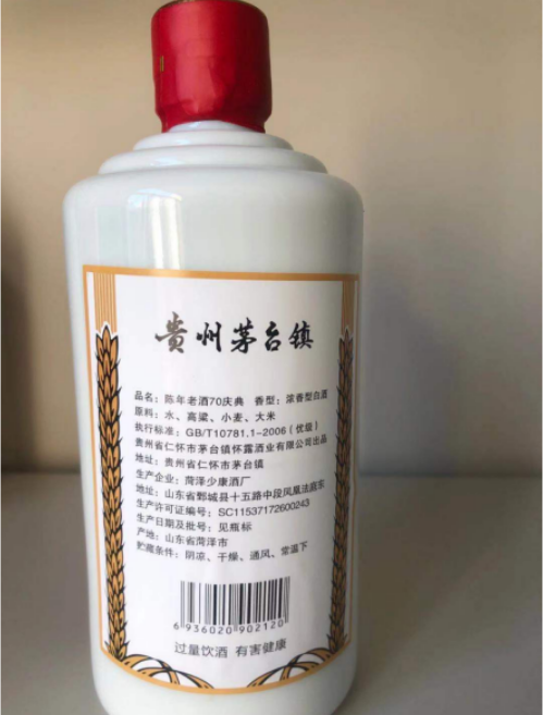 据消费者说事情是在12月26日当天发现的,自己在北京物美超市购买白酒时,一共在超市买了三种白酒:一种名为“茅台镇陈年老酒”,物美超市的价签中产地注明贵州省,并标明原价672元/箱,现售价158元/箱,,包装看起来非常高大上,但是仔细看的话会发现该产品完全仿制茅台酒的外包装瓶,用木盒将6瓶装制成整箱。打开箱子后,首先看到的并非是茅台镇传承的酱香型白酒,而是浓香型白酒。再看酒瓶的标注,产地为山东菏泽,生产企业为菏泽少康酒厂,这与正品茅台酒厂家厂址完全都不一样,后面才发现此款产品与贵州茅台镇无任何关系,更别提跟茅台酒有任何关系,只是一家山东菏泽的酒厂打着茅台镇的名义生产的产品,厂址还是山东菏泽的一个小酒厂生产的一款浓香型白酒。这是赤裸裸的“挂羊头,卖狗肉”的行为,严重影响消费者对产品的理解!