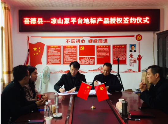 2020年1月3日上午,喜德县人民政府与凉山家平台(四川凉山家平台品牌管理有限公司)于喜德县商务经济合作和外事局二楼会议室进行了关于地标产品“喜德阉鸡”和非物质文化遗产“喜德漆器”的授权签约仪式,喜德两大主要产业正式开创产业互联网里程碑。