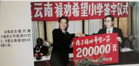 捐资200万元给希望工程,建八所希望小学,救助数千名失学儿童……