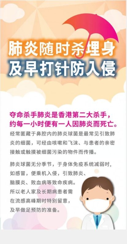 而且13价肺炎链球菌疫苗除了可以预防入侵肺炎球菌, 入侵脑膜而引致既脑膜炎同入血既败血病之外,对预防好发于亚洲人的鼻咽癌都有一定的帮助。