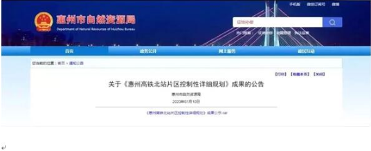 1月10日,惠州市自然资源局发布《惠州高铁北站片区控制性详细规划》成果公告。