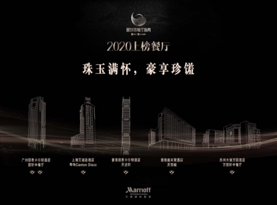 万豪国际多家餐厅在近日公布的“2020美团点评黑珍珠餐厅指南”中揽获多钻殊荣