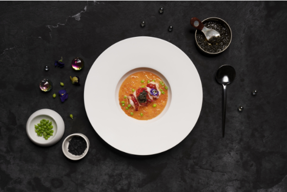 广州富力丽思卡尔顿酒店丽轩中餐厅已有米其林一星加身,本次再获两钻认可,更是代表了广大食客及专家评委对万豪国际餐饮的认可。丽思卡尔顿酒店的餐饮向来以大厨们精湛的厨艺,和绅士淑女们体贴周到的服务而闻名,而广州富力丽思卡尔顿酒店的丽轩中餐厅更是羊城颇受欢迎的美食打卡地。中餐行政总厨郭元峰师傅阅历广泛擅于从自然中发掘当季食材,并以创新的手法展现出粤菜风貌。本次丽轩中餐厅推出的“黑珍珠定制菜单”包含了郭师傅的招牌菜鱼子酱芙蓉花雕蒸苏格兰蓝龙虾,以龙虾壳熬煮出的高汤辅以15年花雕酒及蛋液蒸熟,新鲜蓝龙虾则以西式烹饪中低温慢煮的手法处理,饱满鲜甜的成品给食客带来层次分明的味觉感受。