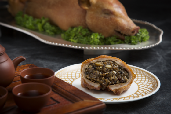 位于香港喜来登酒店的天宝阁传承粤菜传统及精髓,多年获米其林及本地传媒推介,以时令食材入馔,提供地道粤菜丶精致茶点而闻名,数十年如一日的高品质餐点水准,是品尝地道港味的绝佳之选。酒店中菜行政总厨陈伟杰拥有超过25年, 出品屡获中外饕客青睐,出身海味世家的他结合传统粤菜经验善于烹调以海味为主题的上乘菜式,同时兼顾低盐﹑低油﹑低糖、天然食材的健康理念,定期推出应季食材的主题菜式。由陈师傅精心调配的“黑珍珠定制菜单”有一味不可不尝的名物 - 黑松露薏米酿乳猪。采用三公斤重迷你乳猪,以黑松露、薏米、莲子、火腿及其他野生菌等材料酿入起骨后的原只迷你乳猪,再以大火烧熟,端出来时香气阵阵,每当食客用香脆乳猪皮裹着香浓薏米馅一口咬下,黑松露的香气便会四散而出让人齿颊留香。