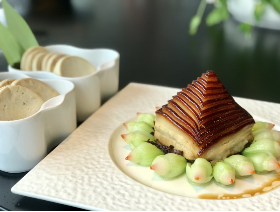 地处太湖之畔的苏州太湖万丽酒店万丽轩凭借其创意料理和周到服务摘得黑珍珠一钻,餐厅设计精巧格调雅致,独特的苏州园林艺术设计让宾客仿佛置身于私家园林中品味精致的淮扬美味。酒店餐饮总监周国荣师傅拥有近30年餐饮从业经验,曾是屡获殊荣的行政总厨及烹饪名家。周国荣先生于2012年获得世界厨师联合会证书,成为当时全国16位获此殊荣的烹饪大师之一,并在G20峰会上为多国元首烹制地道美味。由他监制出品的万丽轩“黑珍珠定制菜单”为美食爱好者呈献11道特色菜式,其中万丽招牌扣肉更是将用东坡肉原有的酥嫩五花搭配精选笋干所调和出的鲜美滋味,尽呈于食客盘盏之中;外观造型更是别出心裁的制作成金字塔状,慢火熬制的酱汁从顶部缓缓渗透向下,散发出葱姜酒的迷人芬芳,广受食客好评。