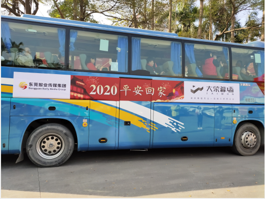 2020年1月15日,由东莞报业传媒集团举办的第十一届,“平安回家”大型春节返乡公益活动,在东莞市体育中心广场举行发车仪式。据了解,今年的“回家”路线有四条,目的地包括:湖南、湖北、江西、广西,四个省份。共提供2000个免费名额,送外来务工人员回家过年。