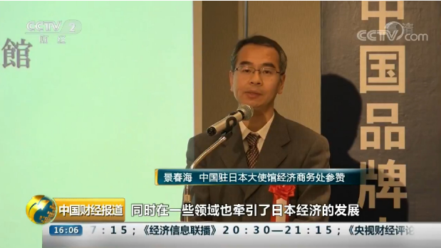 (图:中国驻日本大使馆经济商务处参赞景春海致辞)