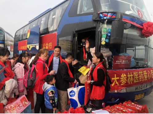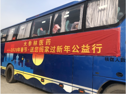 为解决春节前部分外出务工人员的“买票难”问题,大参林联合烟台荣昌制药发起“参情伴您 送爱回家”为主题的送车票公益活动,帮助500余名外来务工人员及家人免费乘坐专业、正规、安全的春运爱心大巴。本次活动共有10辆爱心大巴,从广州天河客运站出发,直达茂名、湛江、梅州、汕头等城市。
