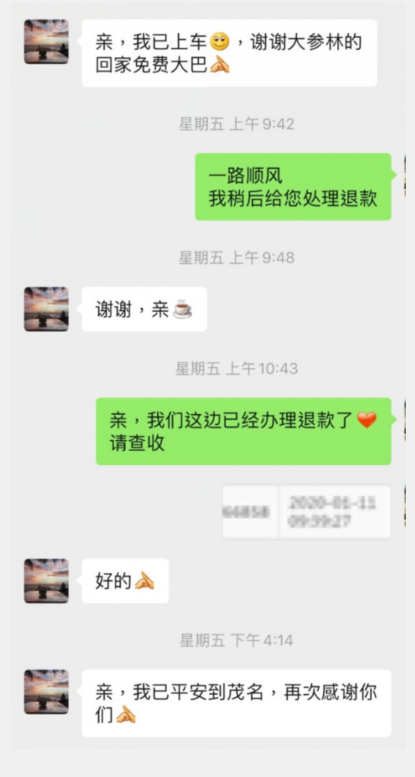 乘客们在上车及到家后,都纷纷向工作人员报来平安到家的消息!