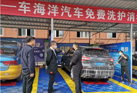 (车海洋“低价洗车、免费消毒”公益活动在各地广受欢迎)