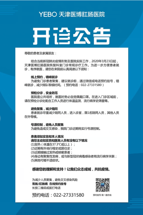 天津医博肛肠医院提醒:若出现胃肠不适,应引起足够重视,及时到医院就诊检查,对症治疗。切勿盲目用药,以免延误病情。