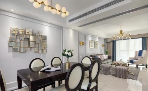 黄铜、黑色金属材质是轻奢风的主要元素,灰色这种优雅的自然色系,以金色、黑色做为点缀,格外精致。