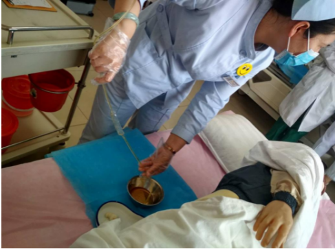 测量药液温度→挂灌肠袋→患者摆体位→插管灌液→拔管→告知→整理用物→洗手记录。