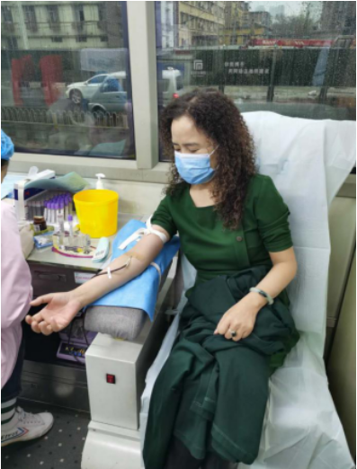 张晓雷院长带头第一个献血,因为体重偏低,她提前一周就开始努力补充营养,终于顺利通过了检测,献了200ML血液。张院长表示:“作为医院员工,我们比普通人更加了解血液对生命和健康的意义;同样,作为医护人员,我们更加懂得无偿献血是保证临床用血、确保患者生命及安全的重要举措。特殊时期,我们虽然已经没有机会到湖北、到武汉的抗疫一线去作战,但是我们可以挽起袖子,用献血的方式贡献一点微薄之力!”。