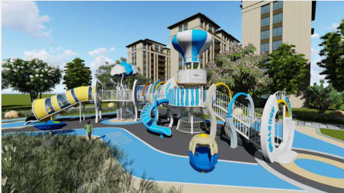 新品设计灵感来源于电影《飞屋环游记》,设计师通过蓝天白云、热气球、时光隧道等元素展开设计,蓝天白天代表着童真和梦想,热气球代表着勇敢的探险精神,而时空隧道则代表着未知的探索精神,整个产品造型充满梦幻的气息,色彩清新。产品具备攀登、平衡、钻、爬、踩、滑行、蹬拉等功能。