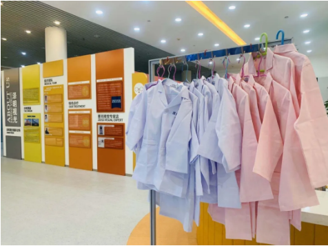 活动开始前,小朋友们先登记消毒,换上泽明视光为小朋友们准备的白大褂,等待活动开始。待小朋友们全部就坐,主持人宣布活动正式开始,并表示欢迎小朋友们和家长们的到来。而后,视光师小姐姐带领小朋友们参观了泽明视光,并介绍了各个仪器的作用,以及视力检查的基本流程。接着进行分组,每个视光师带2个小朋友开始进行视力检测活动,让小伙伴们学习互相问诊,检查视力。活动中,小朋友在我们视光师的指导下,已经能够帮自己的搭档检查视力了。在泽明小课堂期间,视光师们向小朋友们分享爱眼护眼的小知识,能够更好地帮助大家预防近视。