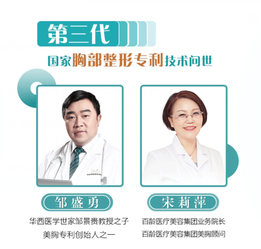 第三代:邹盛勇、宋莉萍,百龄丰胸顾问国家胸部整形专利技术问世