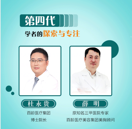 在2016年,百龄医疗美容集团博士院长杜永贵,百龄医疗集团美胸顾问薛明,集成3代美胸专家的技术推出了only one私人定制美胸,结合假体与自体脂肪丰胸的优势,推出了复合丰胸的概念,不仅保障了手术的形态,也兼具了胸部的手感。