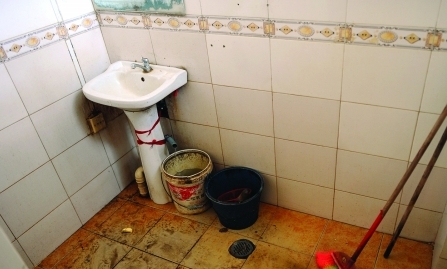 设施破旧但能满足日常使用,卫生状况一般,地上有不少水。