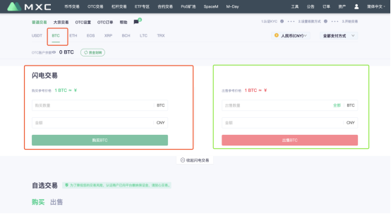 选择BTC后,在闪电交易栏中一一填写“购买数量”和“购买价格”,点击「购买BTC」即可。