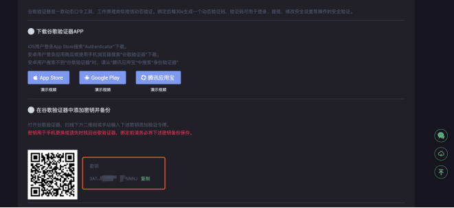 3.邮箱和手机验证比较简单,直接说如何进行谷歌验证。