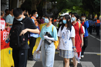 7月7日,考生排队进入湖南省长沙市一中考点。当日,2020年高考拉开帷幕。(新华社记者 薛宇舸)(来源: 经济参考报)