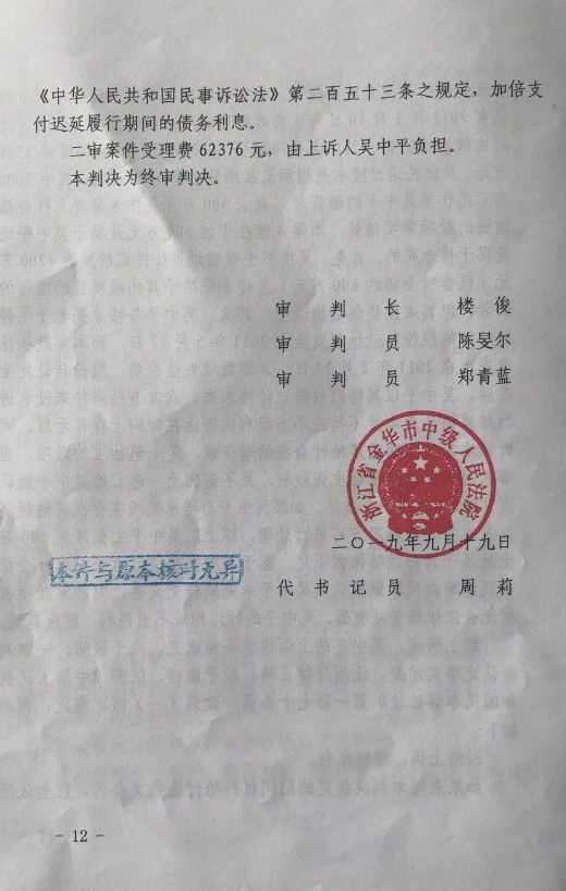 浙江省金华市中级人民法院(2019)浙07民终1737号
