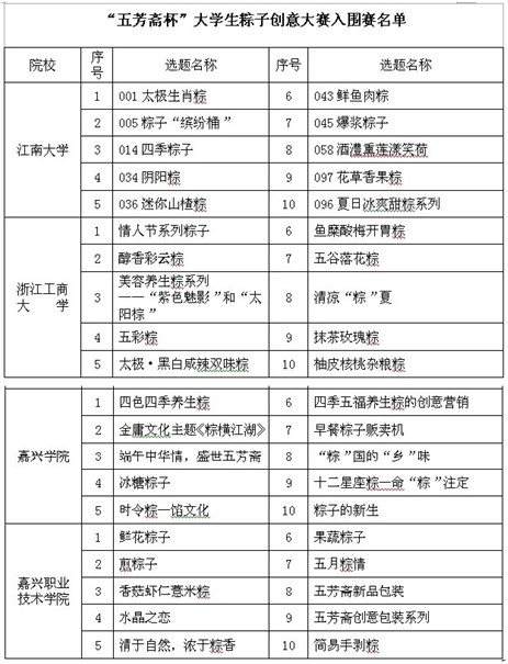 近日,“五芳斋杯”大学生粽子创意大赛初评已告于段落,评审组从四所专业院校选送的参赛作品中评选出40件入围决赛。