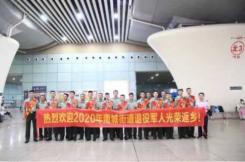 9月3日下午,南城街道武装部、退役军人服务中心负责人及社区民兵营长组团到广州南火车站接11名退伍军人光荣返乡。