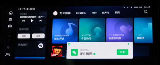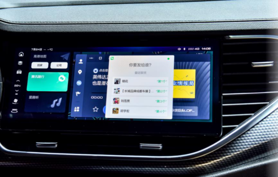 如果行车中收到微信好友发来的车队位置共享,你便可以开启专属的语音助手,“你好妲己,请帮我查看信息、打开定位并开启导航前往这里”;如果想与微信好友进行语音通话,一句“你好李白,我想与微信好友周花花语音通话,声音调大一点”,2021款哈弗F7x便能立刻听懂,并圆满完成你的指令。车载微信让开车时聊微信成为了可能,用户再也无需担心上路即失联的窘境。