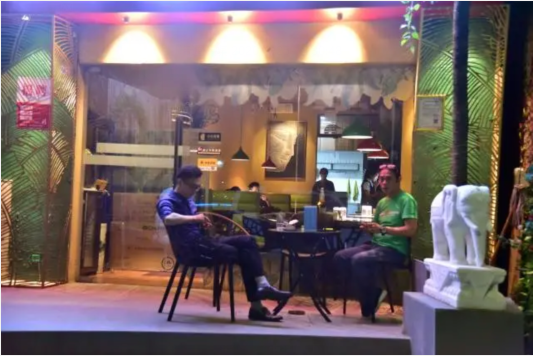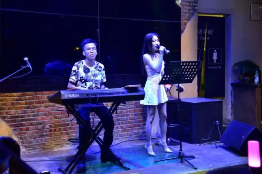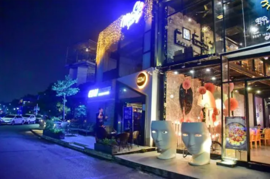 沿着岩前风情半岛长长的街道往前走,一边是星湖水,一边是茶室、咖啡厅、酒吧。很多年轻人坐在里面,恋人更多,喝着一杯茶饮,随意翻着一本书,说着悄悄话。绚丽的灯光,迷离的夜色,低声的细语,深沉的眼神,杯盏交错之间,心中的烦闷与忧愁都一一忘掉。